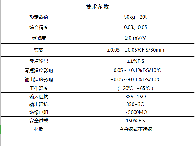 用途與特點具有良好的密封結構,通用性強。一端固定、一端加載,傳力形式多樣。適用于汽車衡、電子秤、料斗秤等??蛇x擇一體化標準信號輸出,三線制0~5VDC或4~20mA。