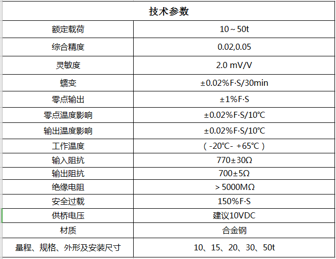 用途與特點(diǎn)大力值,抗偏載,組合壓頭具有自動(dòng)復(fù)位與調(diào)心功能。高精度、低功耗、全密封適用各類惡劣環(huán)境。適用于軌道衡、汽車衡以及各類電子衡等。